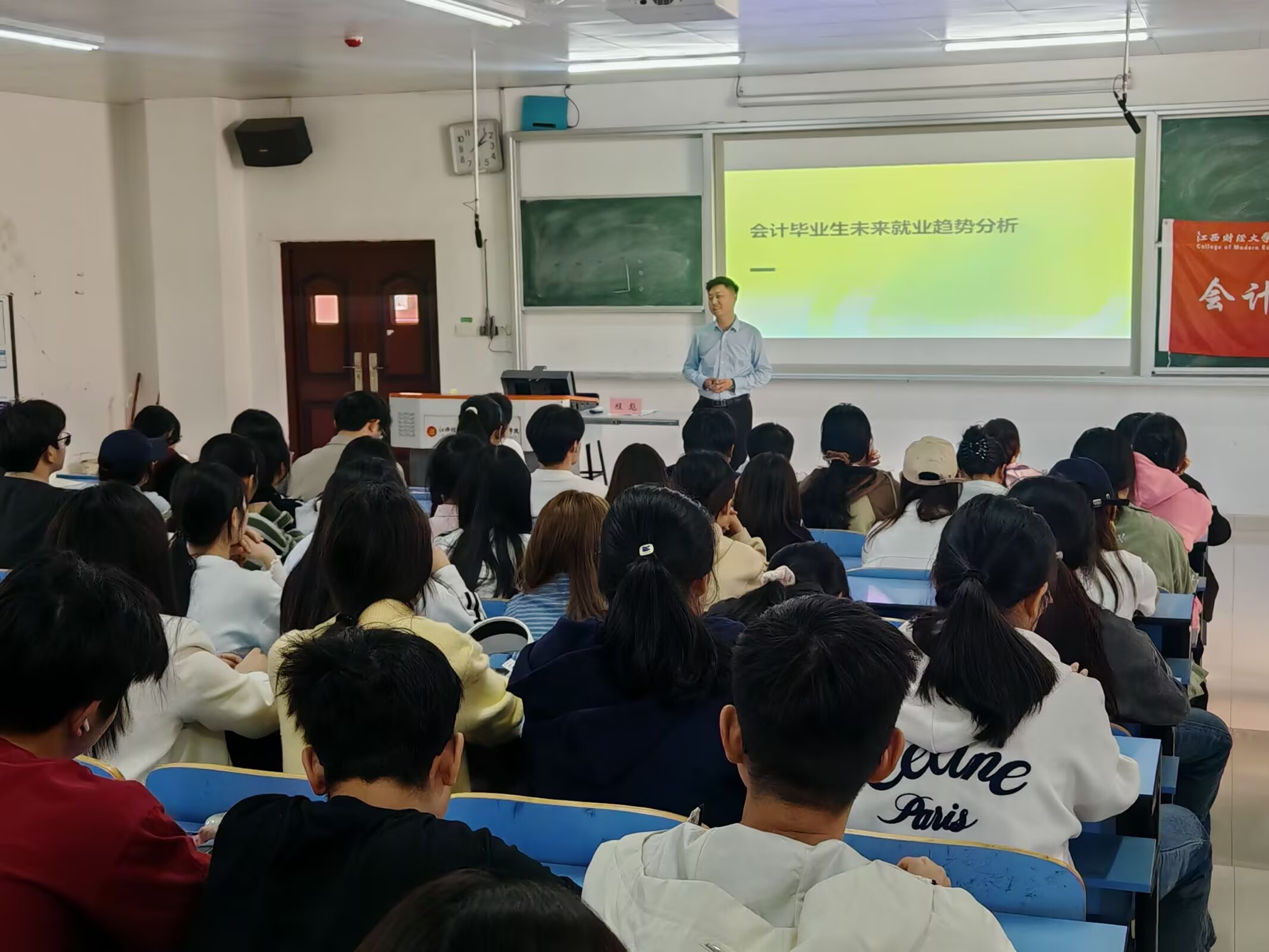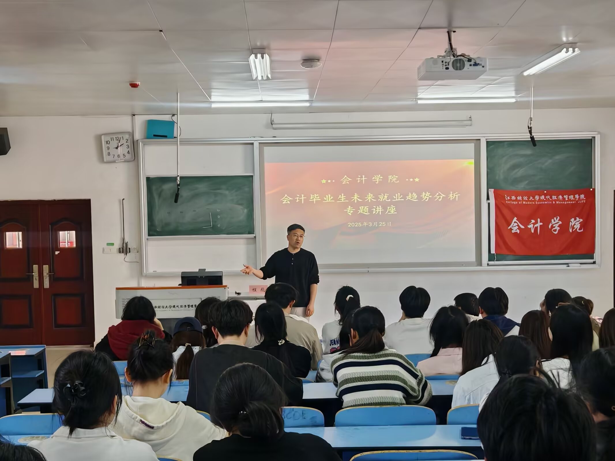 本次专题讲座为会计专业学生提供了最新的行业就业信息,帮助同学们更清晰地认识未来职业发展方向,为制定科学的职业规划提供了重要参考。会计学院将持续开展职业规划、就业指导等活动,相信在学院的精心培育和同学们的不懈努力下,会计学子必将在未来的职业道路上取得优异成绩,为中华民族伟大复兴贡献自己的青春力量。