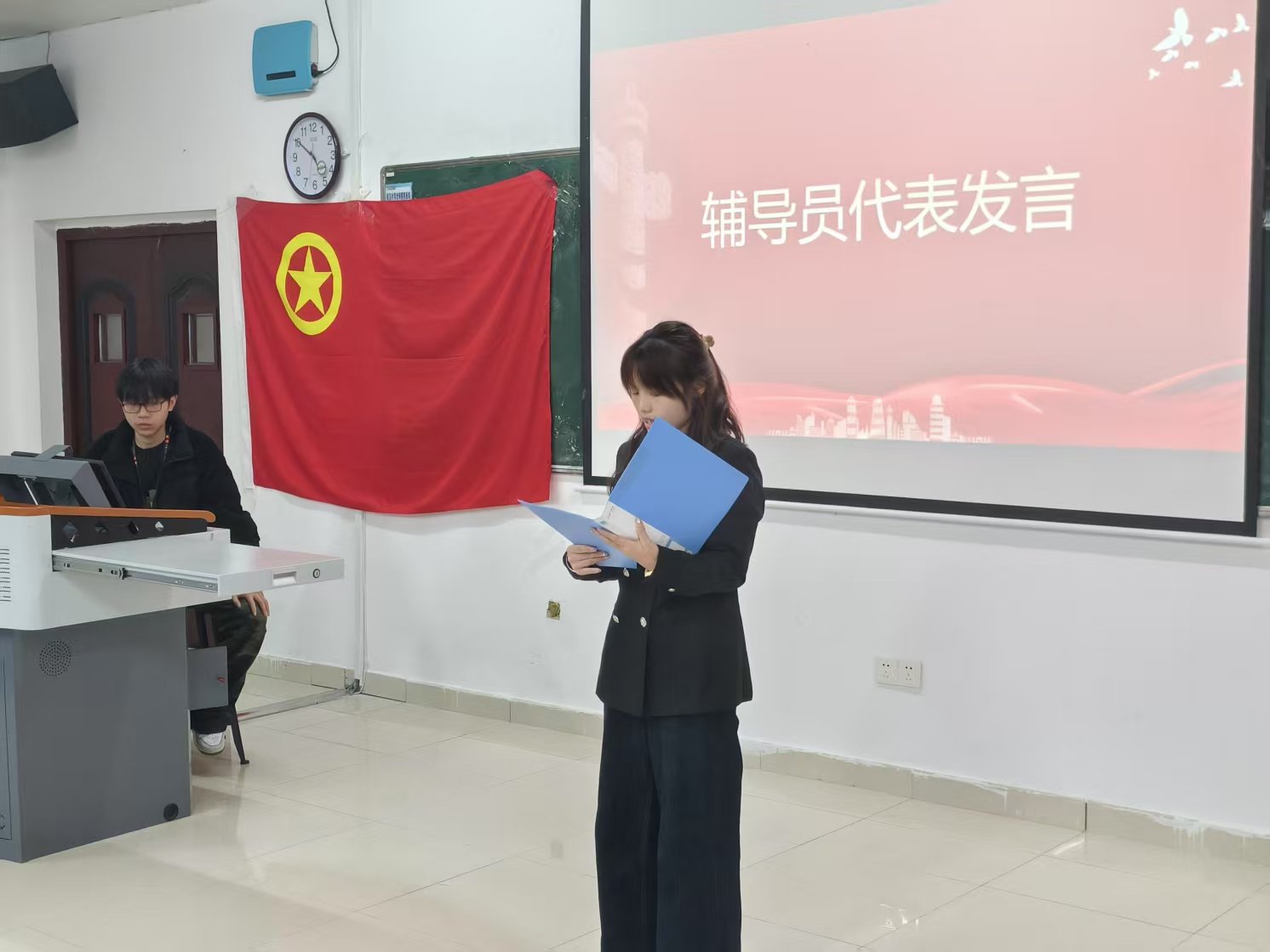 随后,大骨班二班辅导员代表余鑫欣发言,她指出大学生骨干是校园的先锋力量,她鼓励学员在活动策划与沟通中积累经验,强化责任感,提升领导力,勇于面对挑战,不断成长,绽放青春光彩。