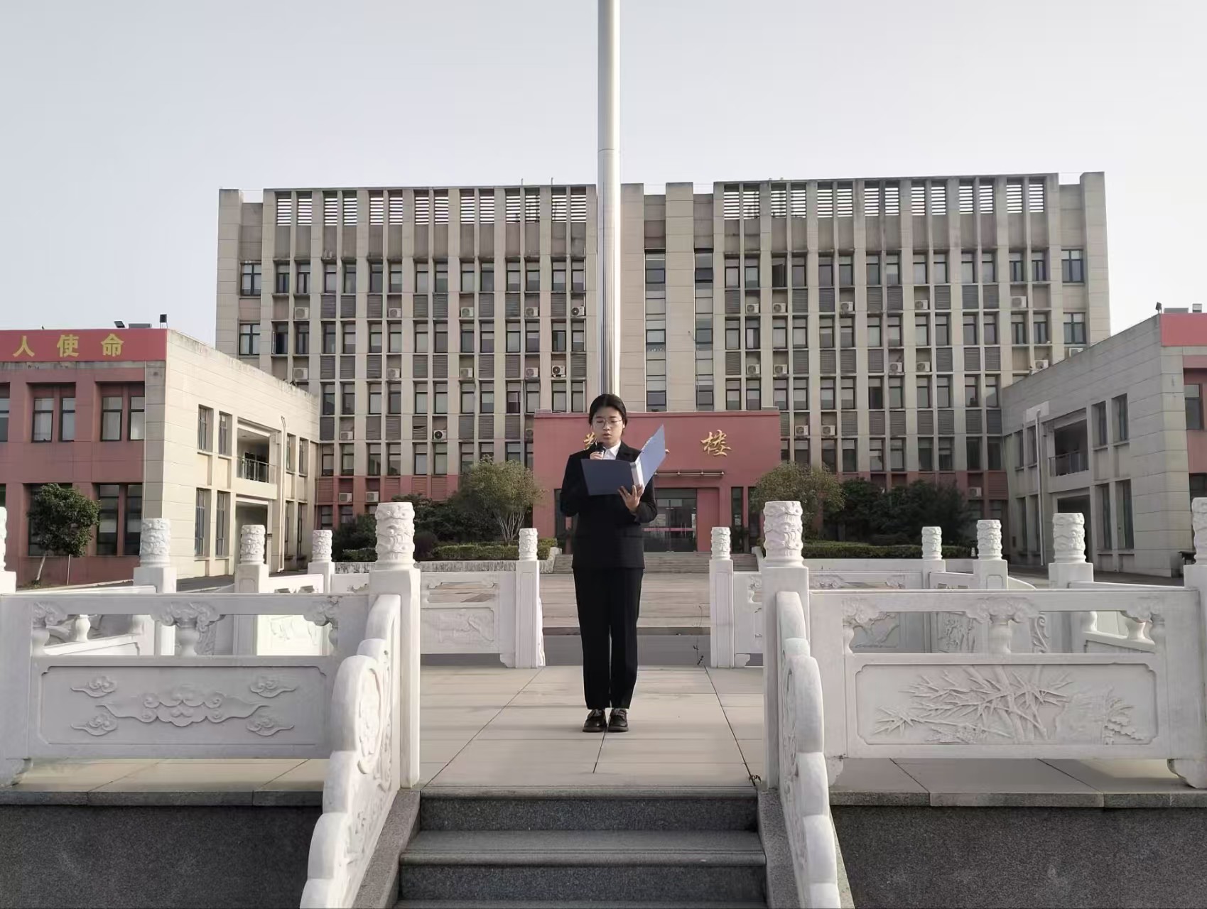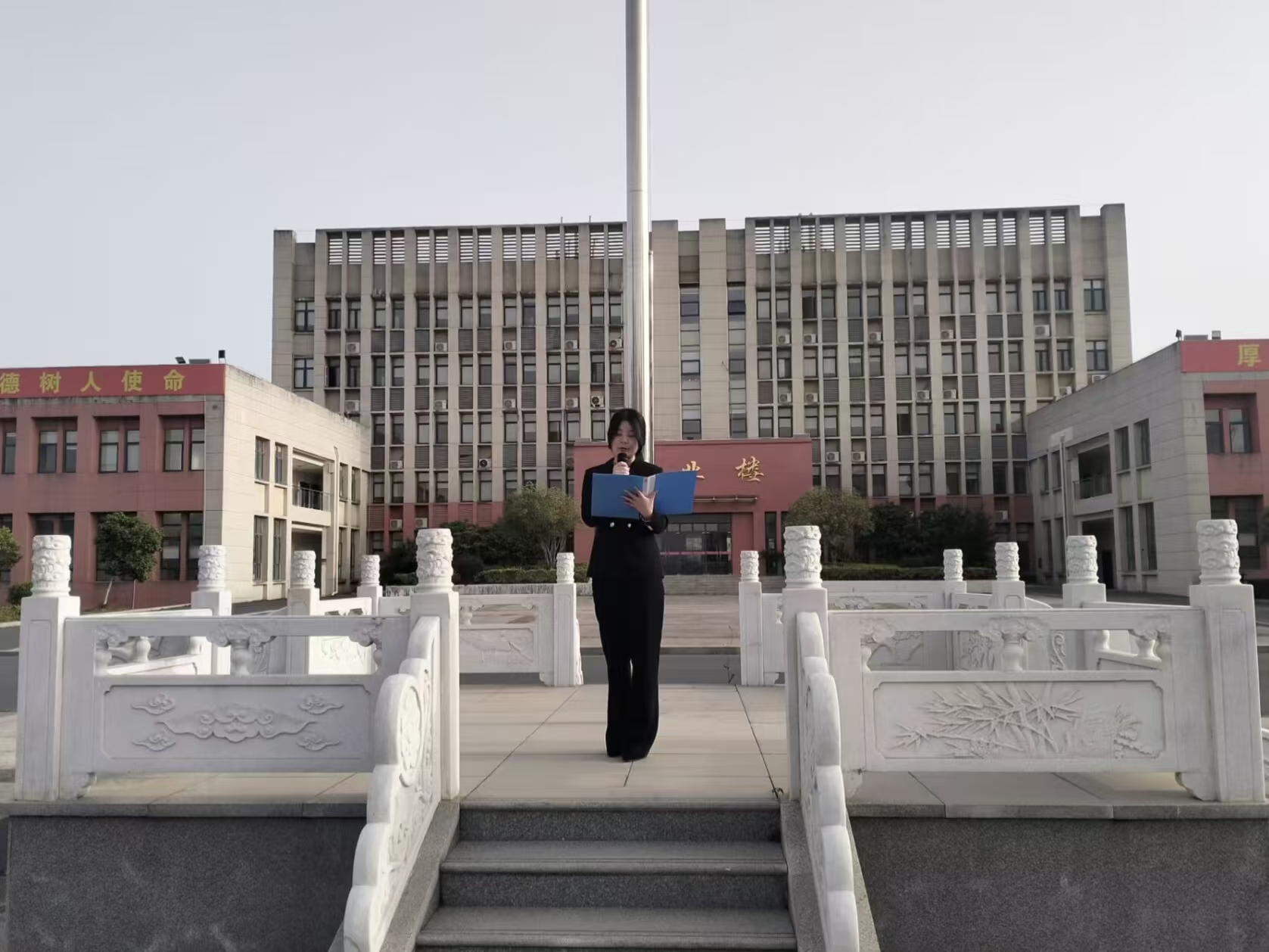 四月芳菲正盛,初晨朝气满盈。英姿飒爽的国旗护卫队迈着铿锵有力的正步,护送五星红旗前行。国歌奏响,升旗手振臂一挥,五星红旗迎着朝阳冉冉升起。全体学生庄严肃立。向国旗行注目礼,高唱国歌。这不仅是一场仪式,也是对校园新一周奋进的宣誓,更是我们对国家深沉热爱。