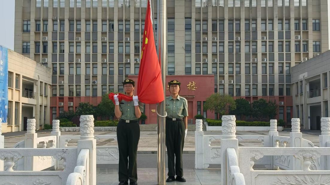 伴随着清晨的微风,国旗护卫队踏着有力的节拍,身姿挺拔,持枪齐步走来,尽显庄严威武。国歌奏响,升旗手奋力扬旗,鲜红的旗帜在晨光中如一团跃动的火焰匀速攀升,与朝阳共舞。师生们昂首挺胸,目光如炬,眼神满是崇敬与自豪。