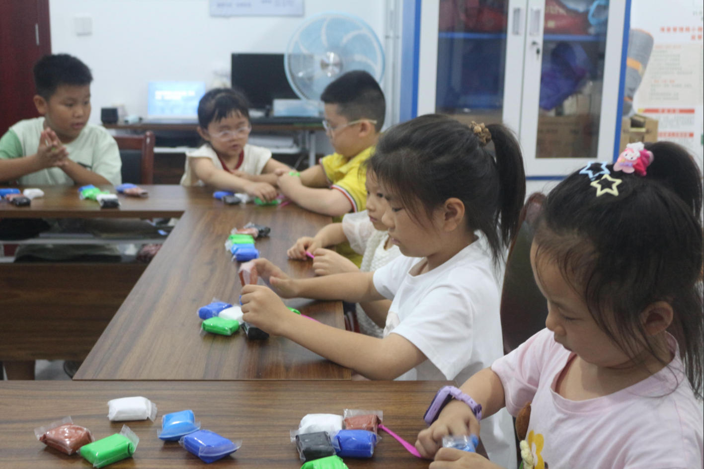活动中,实践团成员以趣味互动展开教学,开场的“猜猜我是谁?”环节极具吸引力,顺势引出地球“表面71%被海洋覆盖”“每天带着我们绕太阳奔跑10.7万公里”等基本特征,鲜活的知识点瞬间拉近孩子们与地球的距离、点燃探索兴趣。随后借助丰富图片展示沙漠的广袤、山脉的巍峨等多样地形,以“选择生活地点及原因”的问题引导孩子们结合地形特点各抒己见,在轻松交流中加深对自然地理的理解。为让知识从书本走向生活,特别设计动手实践环节,孩子们用橡皮泥捏出山峰、峡谷,用沙土堆出河流,在创作与分享中直观理解地形特征,锻炼观察力和空间思维能力。